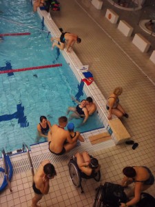 Były to nasze pierwsze tego typu zajęcia. Lekko nie było: 1-szy raz Emilia została od nas (rodziców) odseparowana na ponad dwa dni. Spotykaliśmy się na wspólnych posiłkach i niektórych zajęciach. Napięty grafik, intensywne zajęcia przyniosły rewelacyjne efekty. Dzięki pomocy instruktorek Emi opanowała niełatwą sztukę przesiadania się z wózka na łóżko! Ponadto udział w zajęciach był dla nas – rodziców ważną lekcją, która uzmysłowiła nam gdzie leży granica pomiędzy pomocą a wyręczaniem. Hitem okazały się zajęcia na basenie – 1-sze w życiu Emi. Okazuje się, że nasza latorośl czuje się w wodzie jak przysłowiowa ryba 🙂 Teraz – w domu staramy się pielęgnować nowe nawyki, pogłębiać nowe umiejętności. Trzymajcie kciuki!